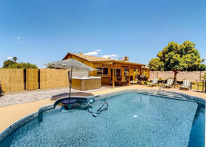 Tea and coffee making equipment are available in the accommodation for self-catering. A refrigerator, an oven, and kitchenware can also be found in an outdoor dining area and a dining place. Guests have access to restaurant Burrito Express, situated relatively near the property. Phoenix-Mesa Gateway airport can be reached in a 31-minute drive from Weecasa Villa. You can enjoy a Jacuzzi in the accommodation, and the area is popular for mini golf, cycling, and squash.